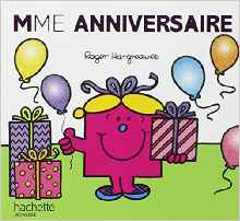Madame Anniversaire Auteur : Hargreaves, RogerIllustrateur : Hargreaves, AdamGenre : AventureType : AlbumThème(s) : AmitiéNiveau(x) : CP - CE1Difficulté : Série : Monsieur Madame
