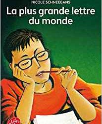 La plus grande lettre du monde Auteur : Scheneegans, NicoleIllustrateur : Diet, RobertGenre : Journal intimeType : RomanThème(s) : Amour - Famille - Mort - RêveNiveau(x) : CM1 - CM2Difficulté :