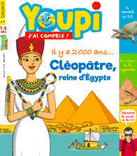 Youpi - Cléopâtre, reine d'Egypte Auteur : Fichou, BertrandIllustrateur : Germain, CléoGenre : HistoriqueType : DocumentaireThème(s) : NatureNiveau(x) : CP - CE1 - CE2Difficulté : Série : Youpi
