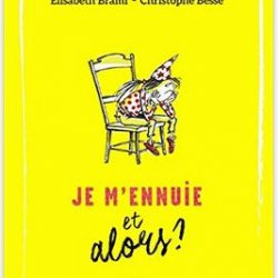 Je m'ennuie et alors ? Auteur : Brami, ElizabethIllustrateur : Besse, ChristopheGenre : Journal intimeType : RomanThème(s) : EnfanceNiveau(x) : CE2 - CM1 - CM2Difficulté :