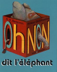 Oh non dit l'éléphant Auteur : Benjamin, A.H.Illustrateur : Goldouzian, AlirezaGenre : Humour - RéflexionType : AlbumThème(s) : Amitié - Animaux - DifférenceNiveau(x) : CP - CE1Difficulté :